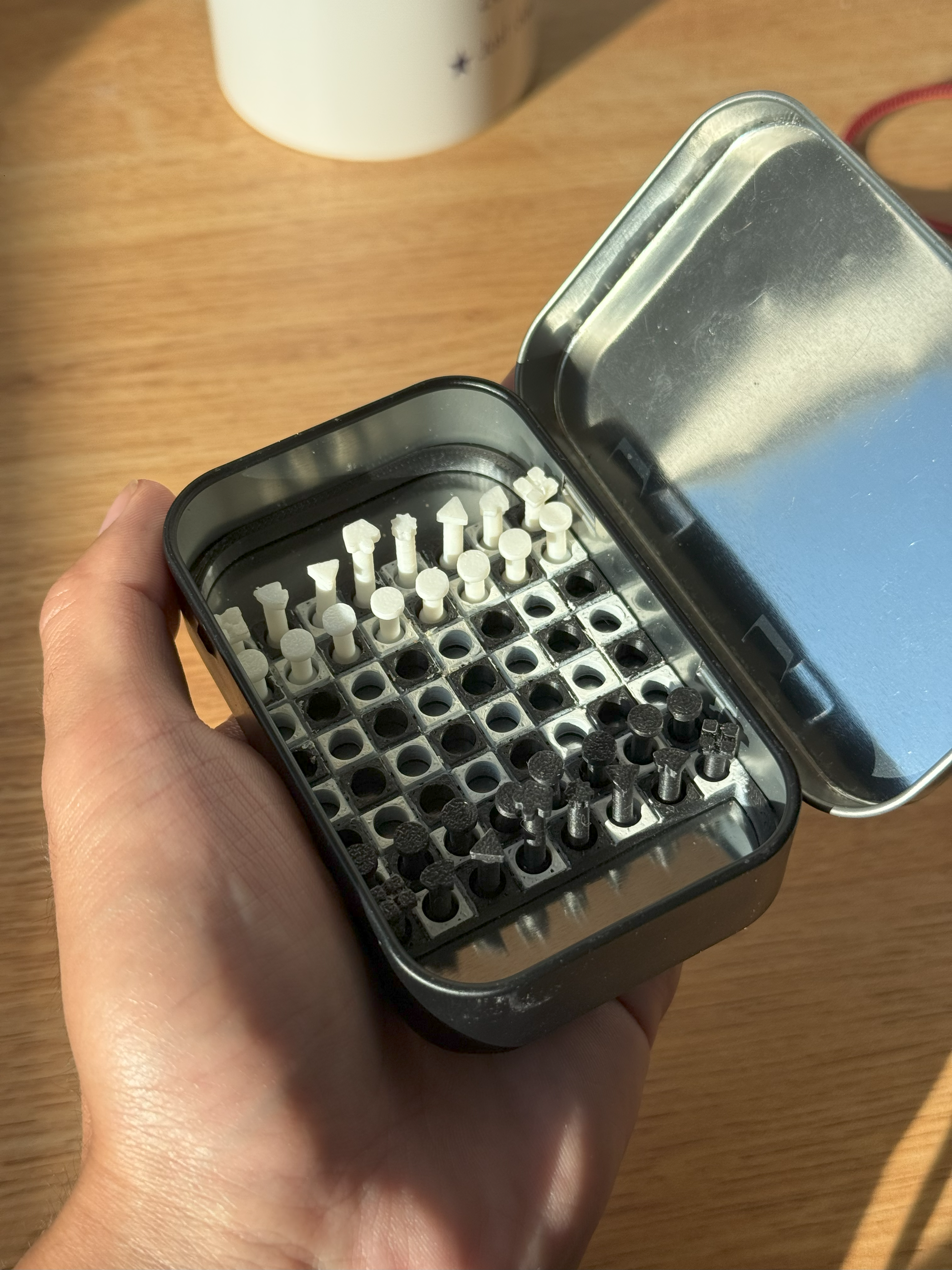 The pieces have magnets integrated into their base, ensuring they snap in to place during gameplay. They’re designed to be easily printable and recognizable by a few methods despite their small size.